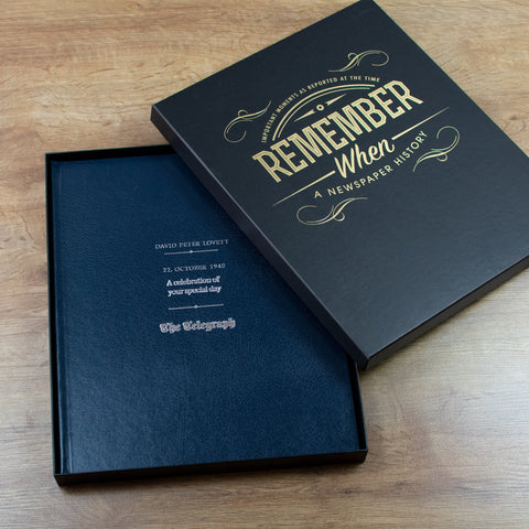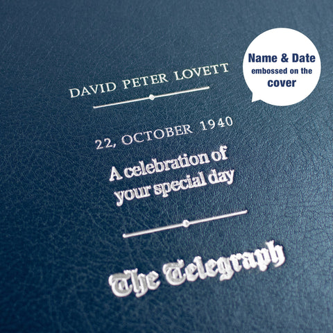 Founded in 1855, The Telegraph is one of Britain's most popular newspapers. Our range of Telegraph newspaper books provides headline news from each year since your birth right up to the present day. A lifetime of fascinating content presented inside a range of premium hardback covers, embossed with your name on the front cover. A personal message can also be added to the opening page, and a gift box is available for an additional £5 RRP.